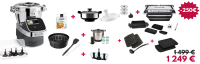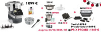 | Accessoires inclus | 4 couteaux et leur boîte de rangement, le panier interne, un cuiseur vapeur avec plateau intermédiaire, accessoire découpe-légumes et ses 3 disque de découpe, un livre de 300 recettes. + un grill Standard Marmiton (grill + accessoires) |