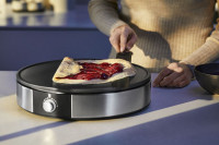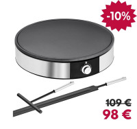 - Livrée avec un « râteau » pour répartir uniformément la pâte et une spatule pour retourner la crêpe. Passent au lave-vaisselle.